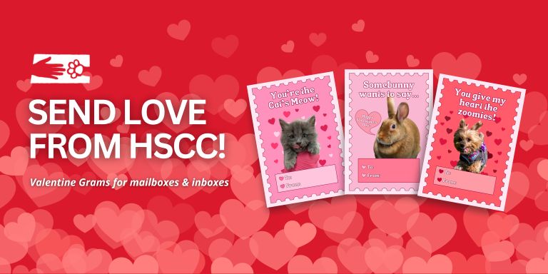 Let a special someone in your life know that they're paw-sitively amazing with a HSCC Valentine's Day Gram! Celebrate Valentine's Day with us and let a fellow animal lover know they're in your thoughts with a kind donation, with the funds directly benefiting the animals in our care and our many programs and services.